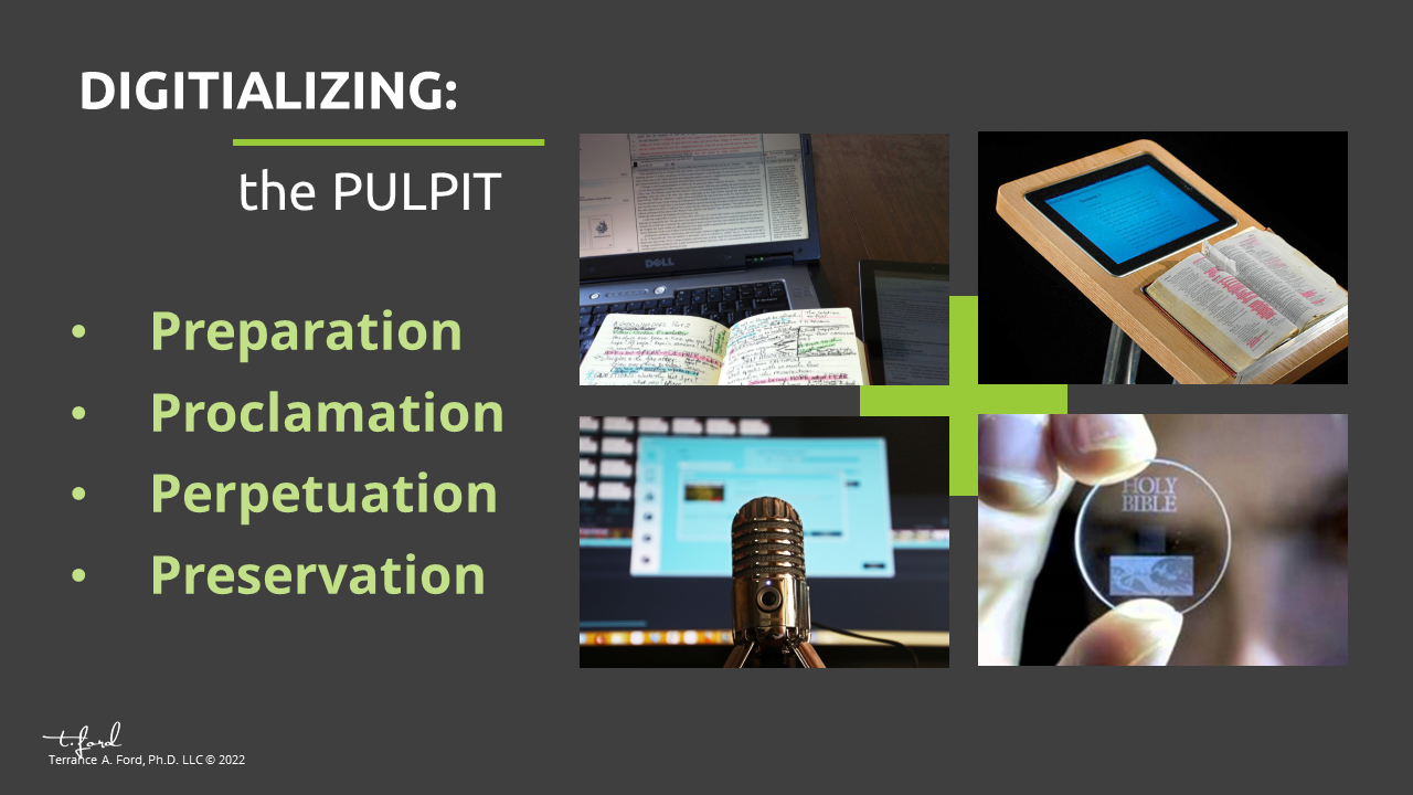 This presentation is another lecture blog extension. It looks at the rapidly increasing influence of technology on preaching and pulpit ministry in general—and subsequently those in the pews. A key developmental question of this discourse is: How should we as Christian ministers USE technologies in light of the Creator of the Universe?
