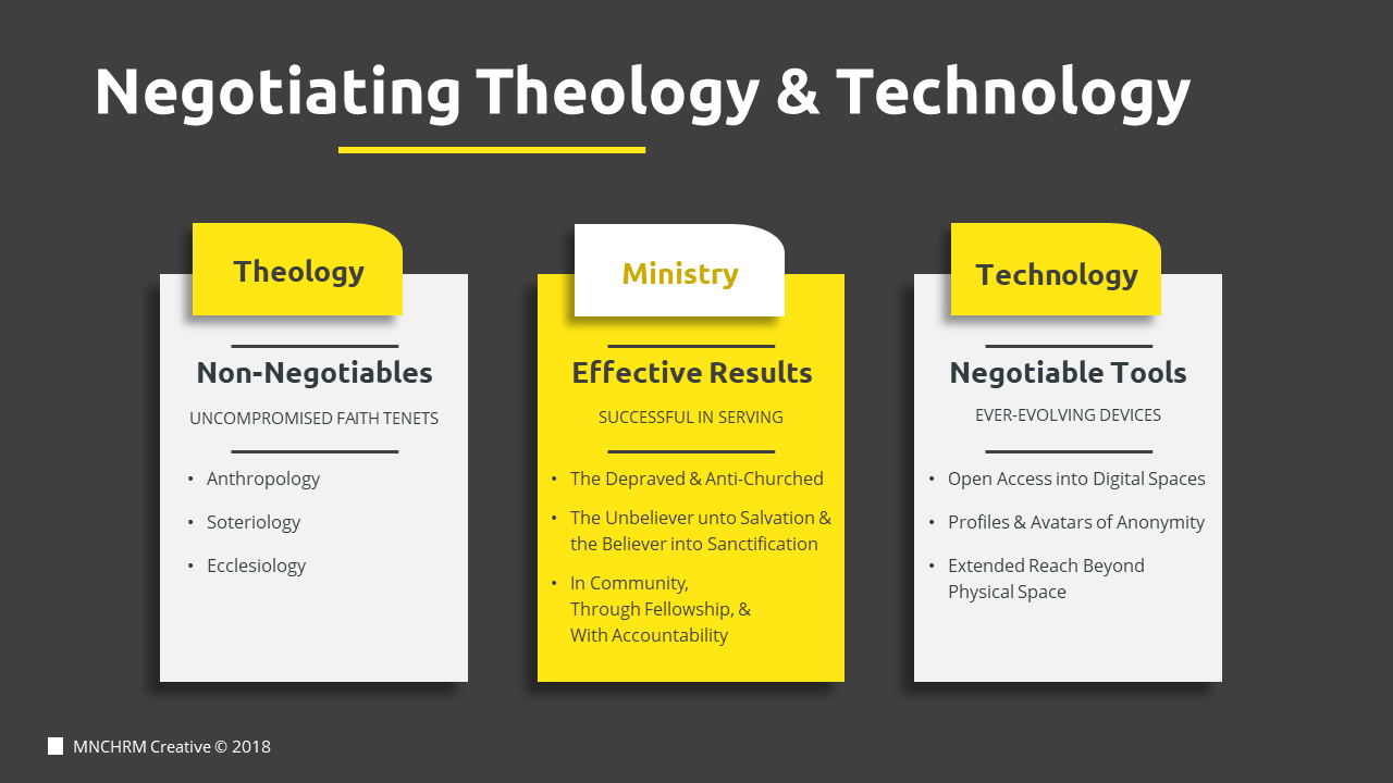 The Global Pandemic of 2019 in many ways thrust the church “lightyears” into its technological future! Hence, those of us who have been chosen to navigate this new terrain must not only be theologically sound, but technologically savvy as well as! This presentation sets the groundwork for those who must negotiate between theology and technology in practical ministry spaces.